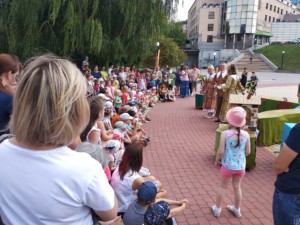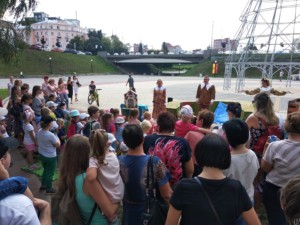 Сегодня маленькие рязанцы и их родители смогли посмотреть спектакль “Красная шапочка” Рязанского театра кукол. Импровизированная сцена была установлена на Лыбедском бульваре Рязани.