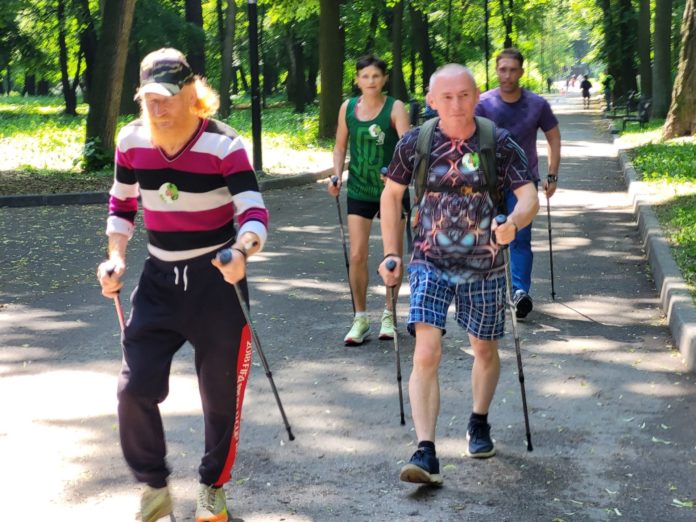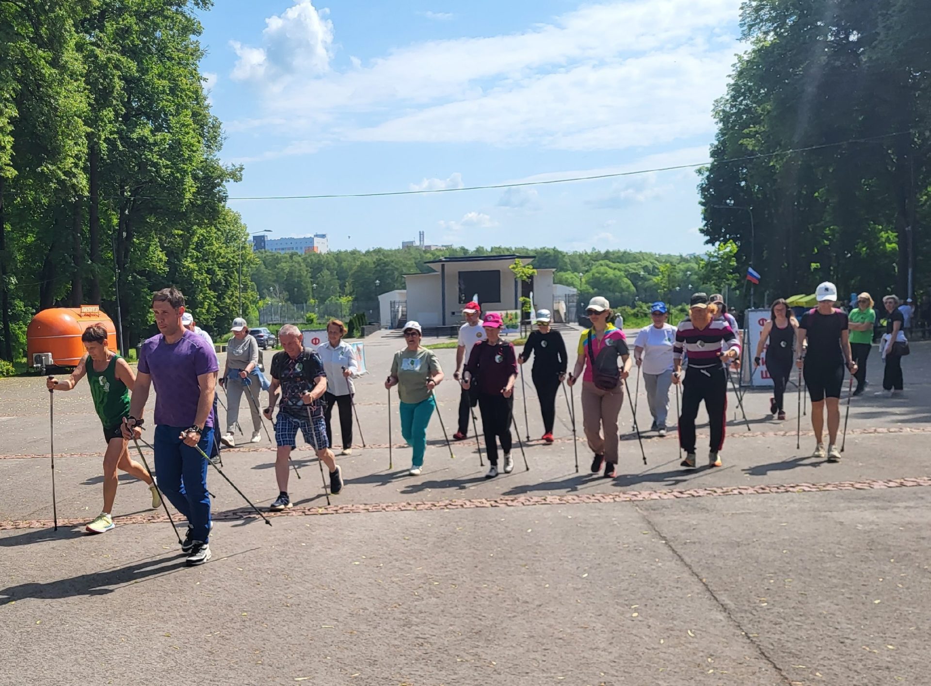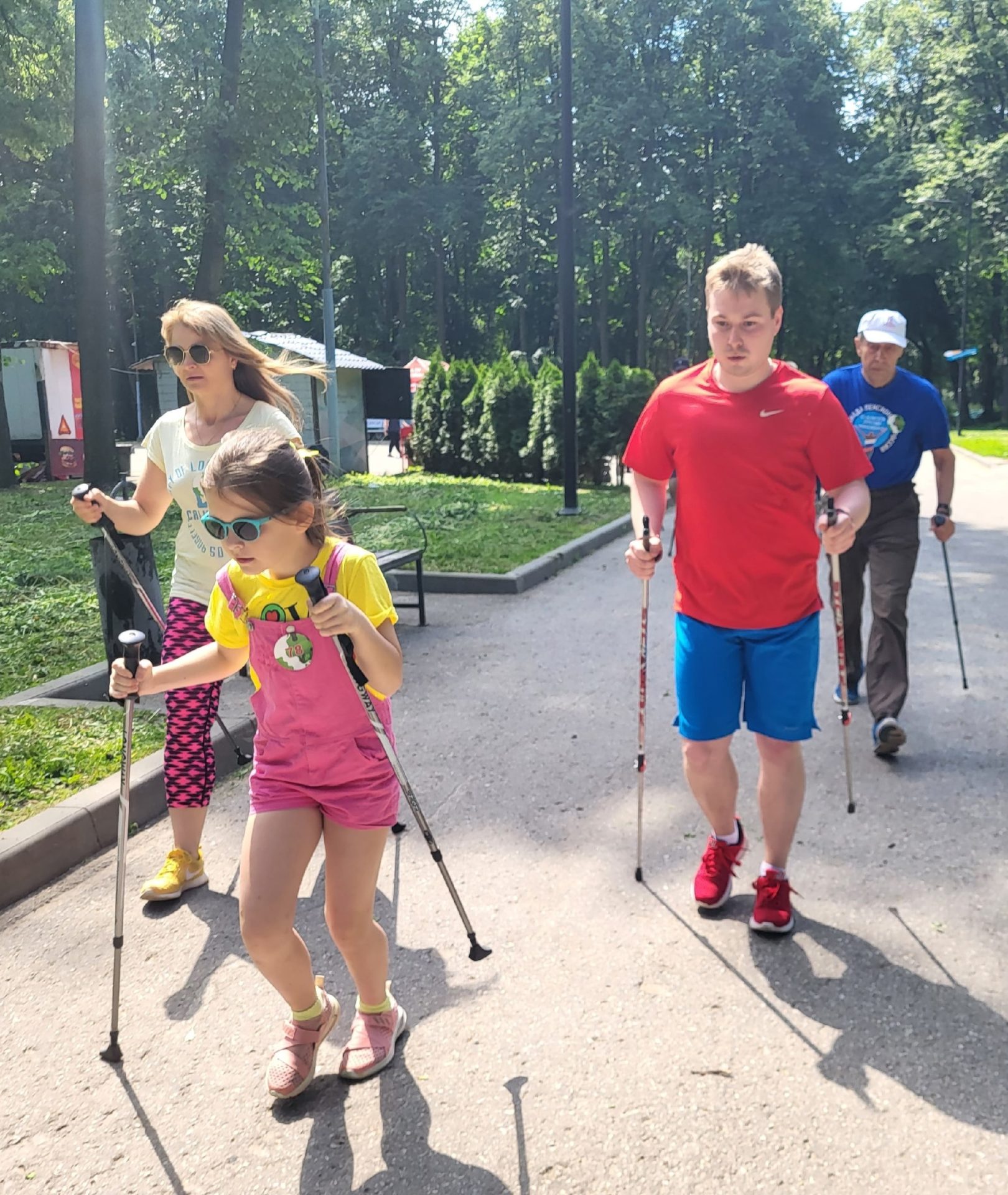 Уже состоялись мастер-класс по Северной ходьбе, разминка, старт участников на дистанцию 2 км и 4 км.