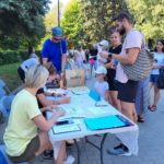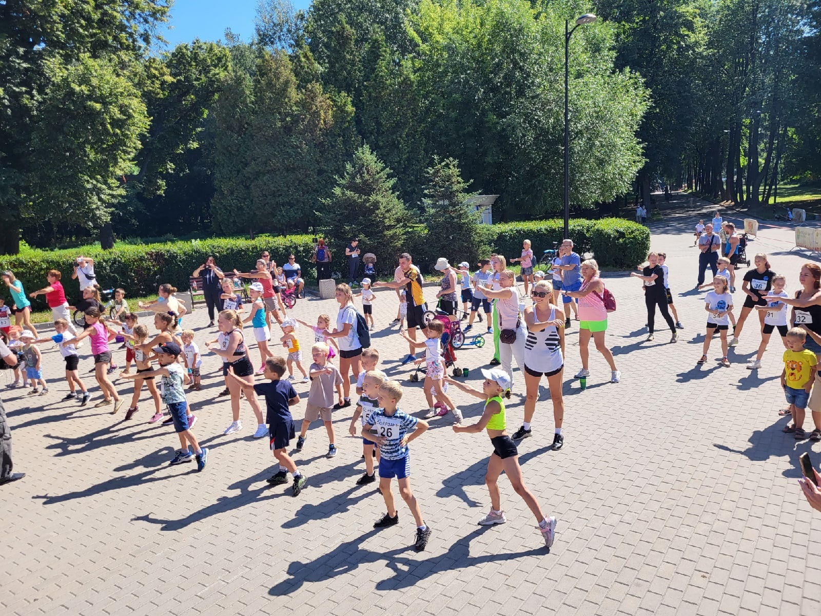 Перед стартом участники забега провели разминку. Дистанций не много – 300 и 500 метров в зависимости от возраста. Самые маленькие бегут, взяв за руки своих пап и мам.