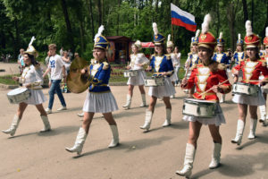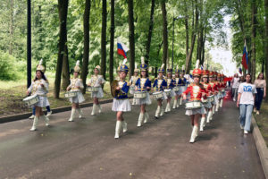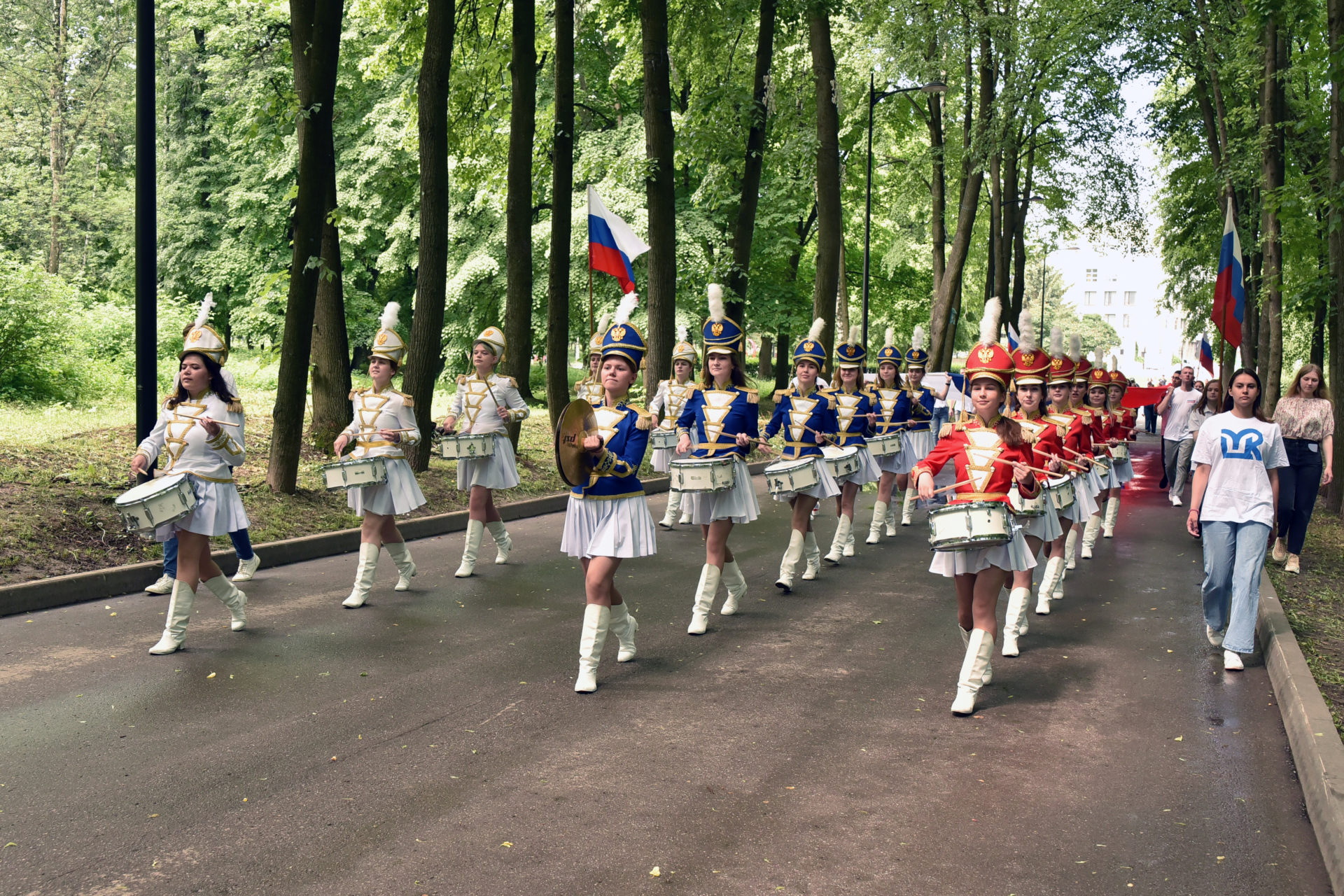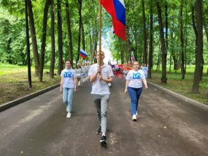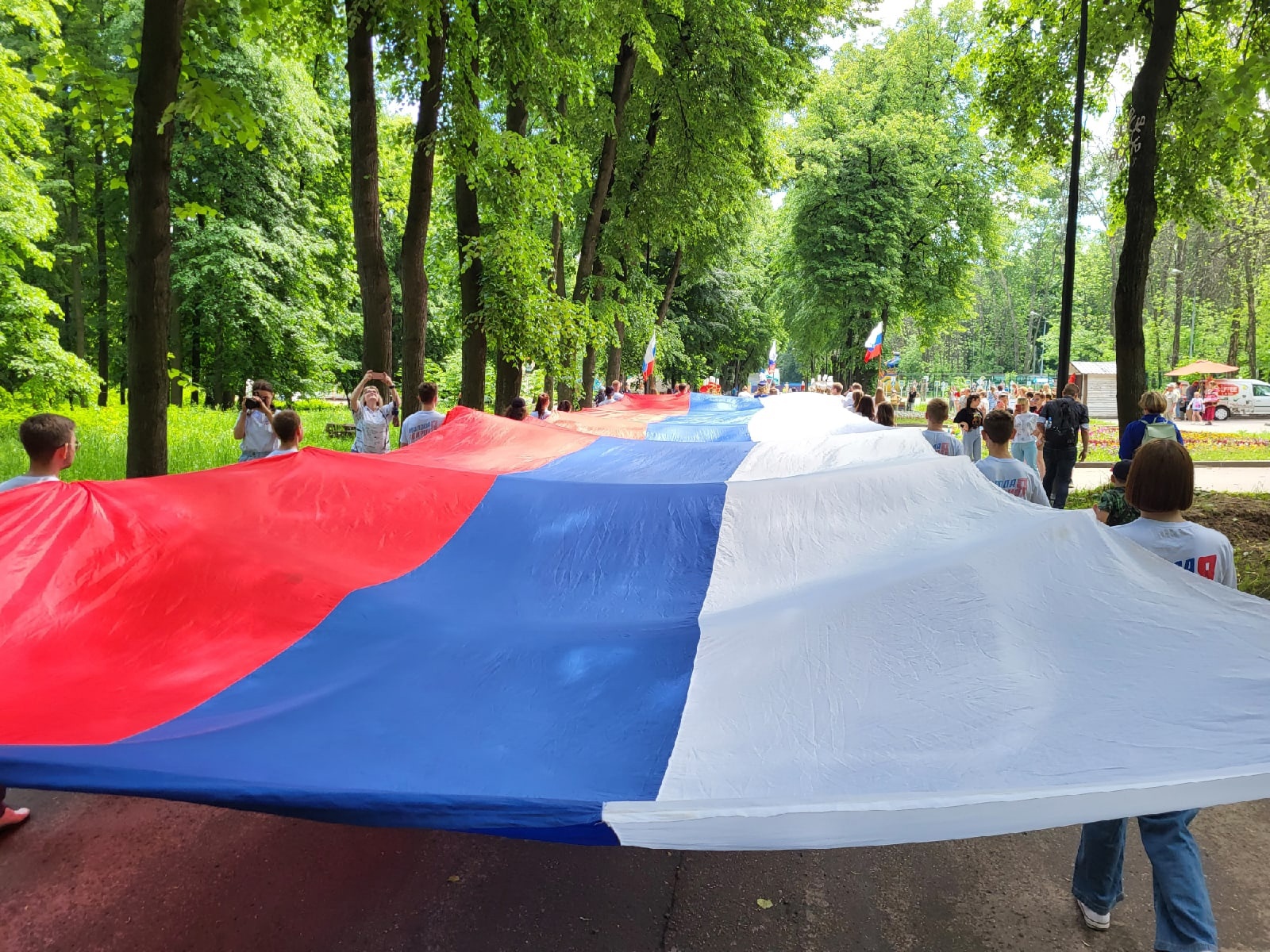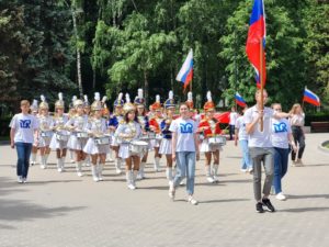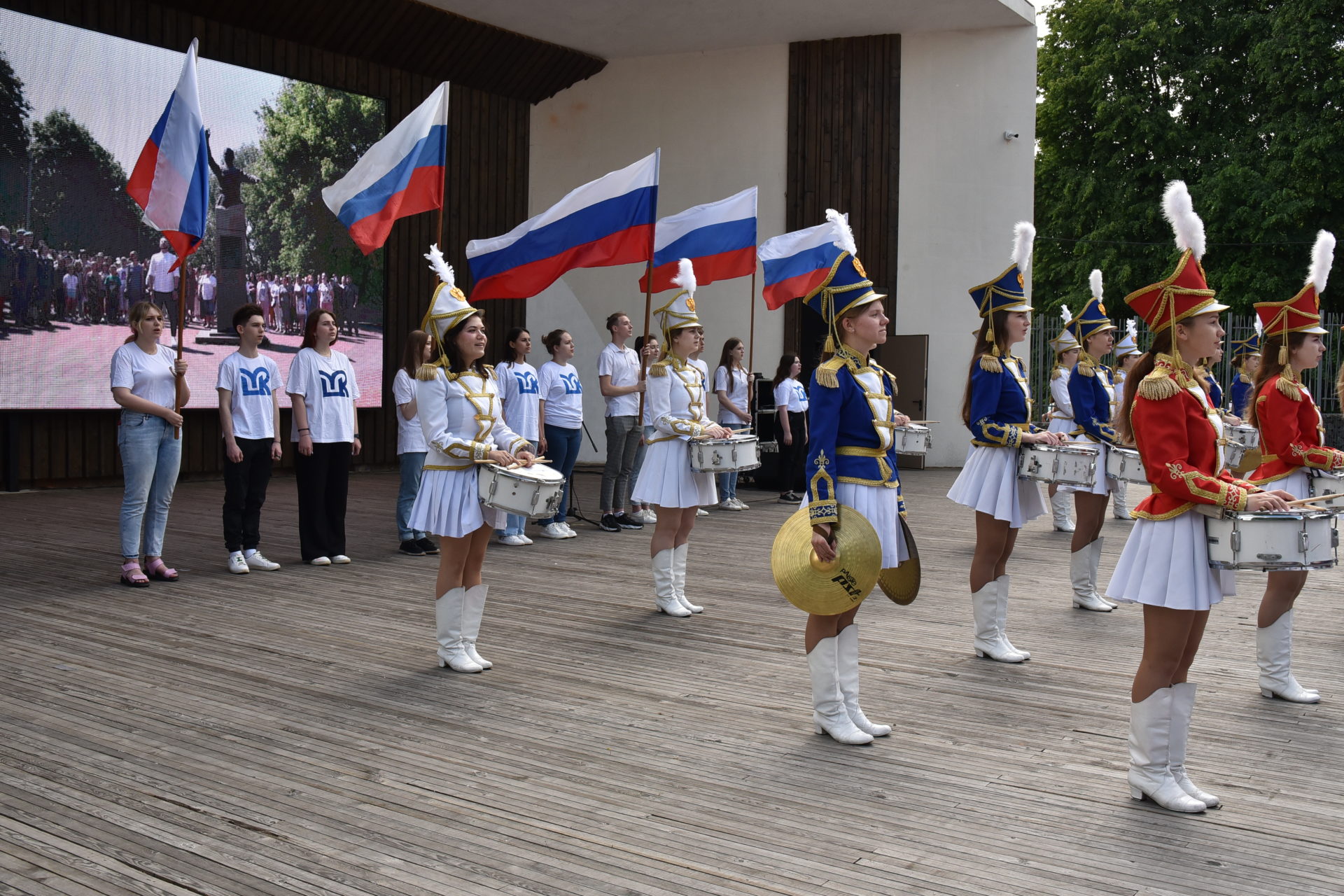 Праздник, посвященный Дню России, сегодня начался с мотопробега, а продолжился в ЦПКиО. Флаг России волонтеры, в сопровождении барабанщиц Академии ФСИН России, пронесли по аллеям парка от улицы Пушкина до Зеленого театра.