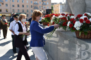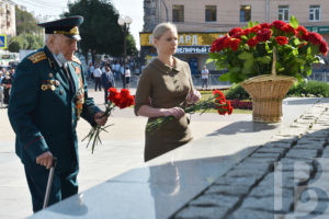 После Минуты Молчания у Вечного Огня прошло возложение цветов и прохождение торжественным маршем курсантов Рязанского гвардейского высшего воздушно-десантного ордена Суворова дважды Краснознаменного командного училища им. В.Ф. Маргелова.
