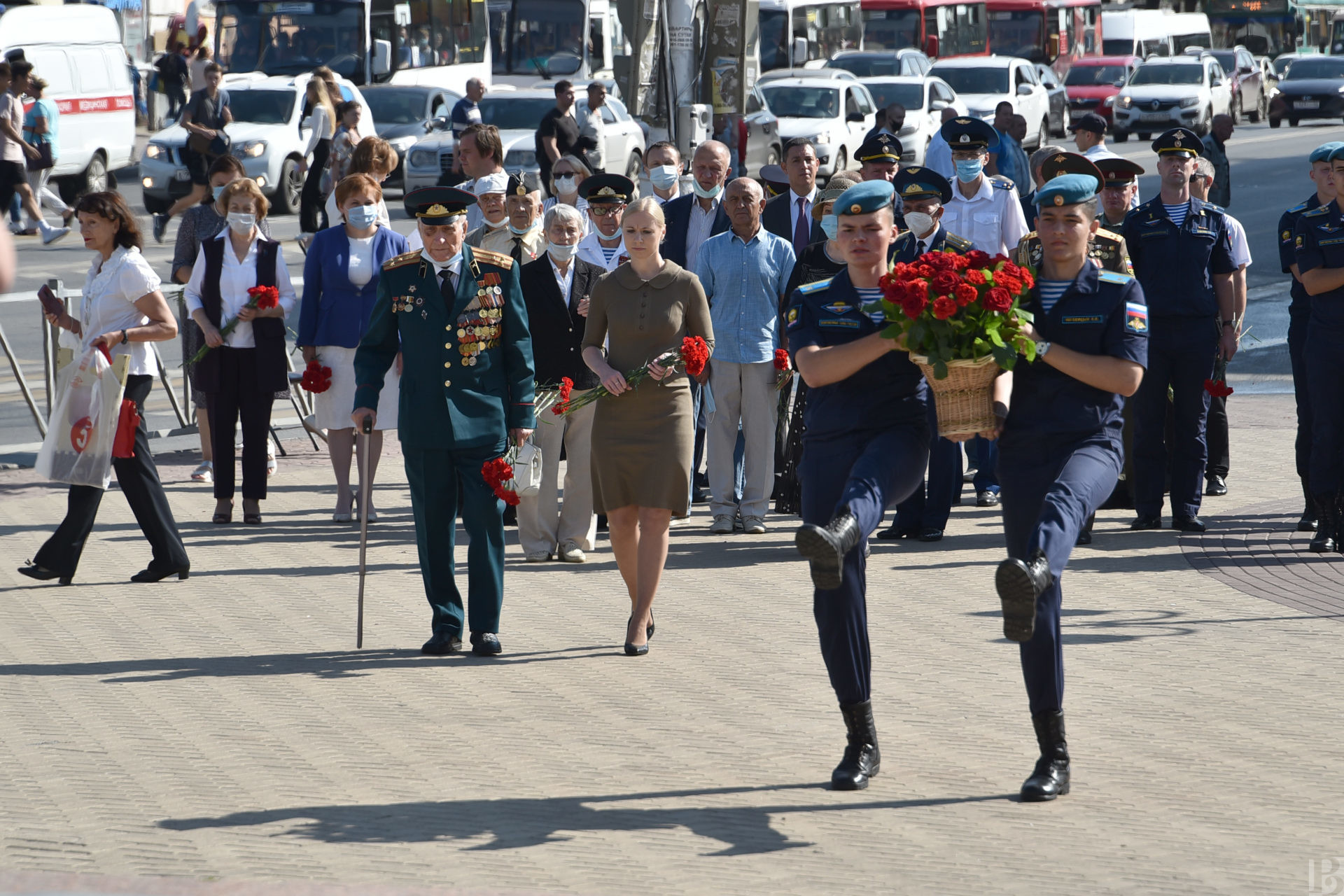 После Минуты Молчания у Вечного Огня прошло возложение цветов и прохождение торжественным маршем курсантов Рязанского гвардейского высшего воздушно-десантного ордена Суворова дважды Краснознаменного командного училища им. В.Ф. Маргелова.