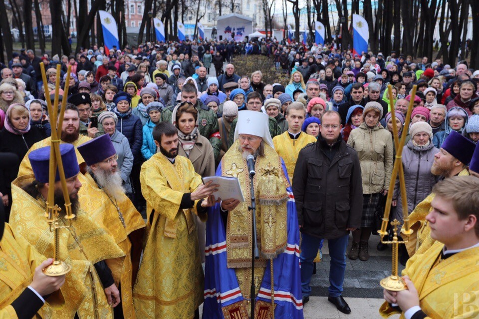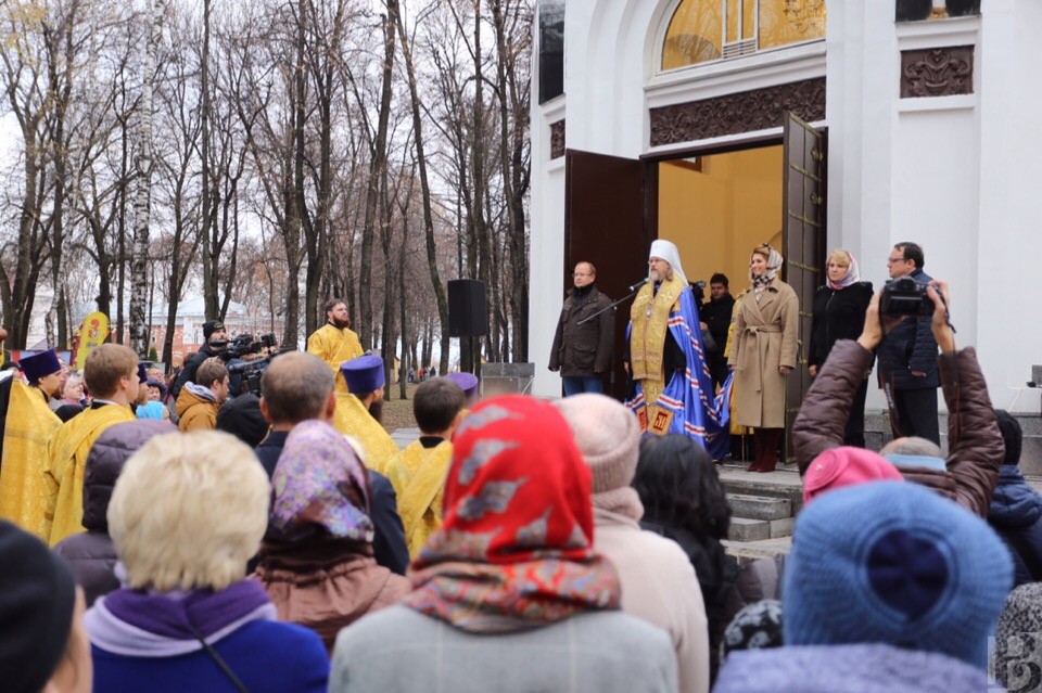 – В нашей истории есть периоды, когда людям было настолько плохо, что они объединялись вокруг благой цели и идеи служения Отечеству, – сказал, обращаясь к рязанцам, митрополит Марк. – Главной идеей была идея сохранения нашей России, святой Руси, места, благословленного Богом. Сегодня мы с вами собрались на этом месте. Часовня, построенная в часть 900-летия Рязани, оказалось на какое-то время забытой и отчасти заброшенной. Благодаря губернатору и главе администрации Рязани, часовня эта вновь становится центром притяжения рязанцев. Все вокруг здесь преобразилось, и символично, что именно сегодня, в День народного единства, мы совершили обновление этого святого места. Если мы будем едины, сильны, крепки, то Рязань, как и вся наша Родина, будет устремлена в будущее.