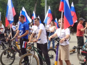 Участники пробега проехали с российскими флагами по всему лесопарку большой колонной по выделенным для этого велодорожкам,а после поделились своими впечатлениями.
