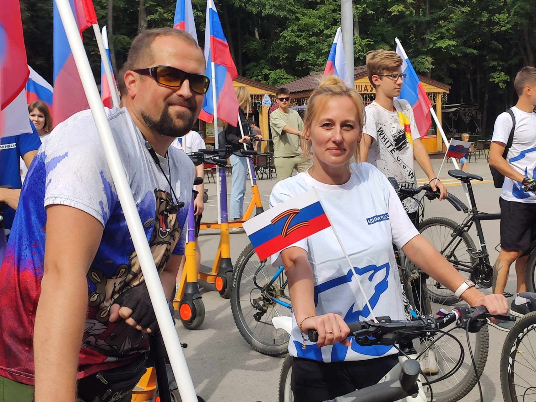 Участники пробега проехали с российскими флагами по всему лесопарку большой колонной по выделенным для этого велодорожкам,а после поделились своими впечатлениями.