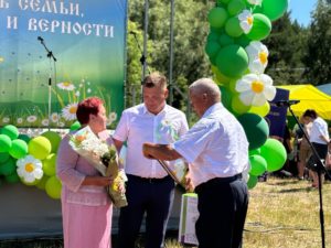 В селе Ласково во время торжественного концерта в честь Дня семьи, любви и верности, наградили пары, которые живут в браке 30, 40 и 50 лет. Презенты также получили многодетные семьи, ожидающие пополнения.