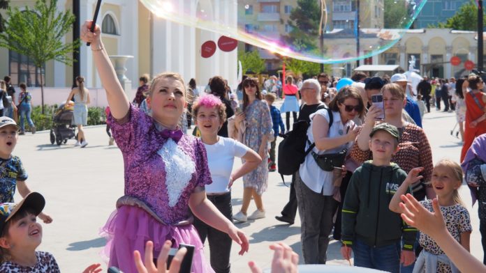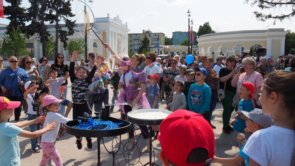 Территория объекта культурного наследия открылась в День защиты детей, и юным посетителям Торгового городка было чем заняться. Они с удовольствием участвовали в конкурсах и получали призы, наблюдали шоу мыльных пузырей. Для детей приготовили сладкие подарки – три тысячи порций мороженого и сладкой ваты.