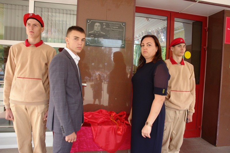 Открыли мемориальную доску вдова Героя Ольга Сергеевна и сын Александр.