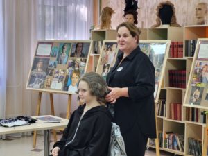 – Так я стала художником-гримёром. Увлечение переросло в профессию, в которой я, конечно, счастлива. Сегодня я вам здесь представляю выставку фотографии из нескольких стендов, которые показывают мою работу в различных фильмах. В Касимове я впервые, но надеюсь, что мы подружимся. Когда у вас будут снимать какой-нибудь интересный фильм, я приеду, и мы с вами проведём мастер-класс на тему: «Как быстро сделать себе макияж» или «Как себе самой сделать причёску за 10 минут», но это в будущем, а сегодня я вам расскажу о профессии художника-гримёра, – говорит Виктория Рыбакова.