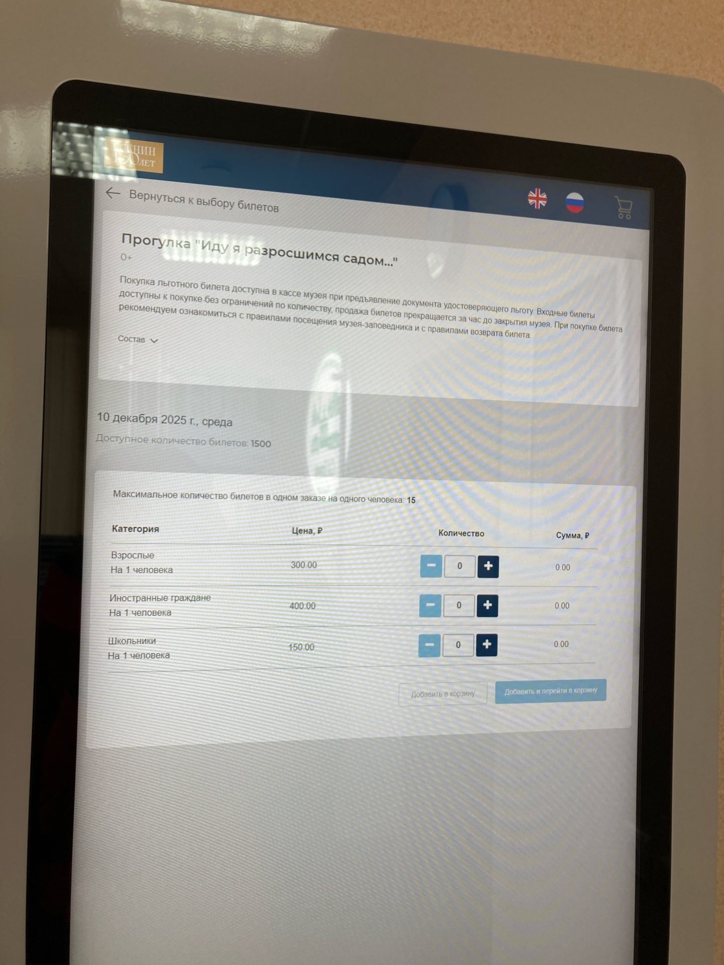 Кроме этого, продолжают работу киоски для продажи билетов: два на кассе и один на территории музея-заповедника.