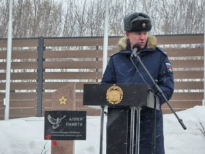 Временно исполняющий обязанности заместителя начальника по военно-политической работе РГВВДКУ имени генерала армии В.Ф.Маргелова, гвардии подполковник Роман Гусаков говорил о героизме наших бойцов в зоне проведения СВО и великой роли защитников Отечества в отстаивании интересов России.