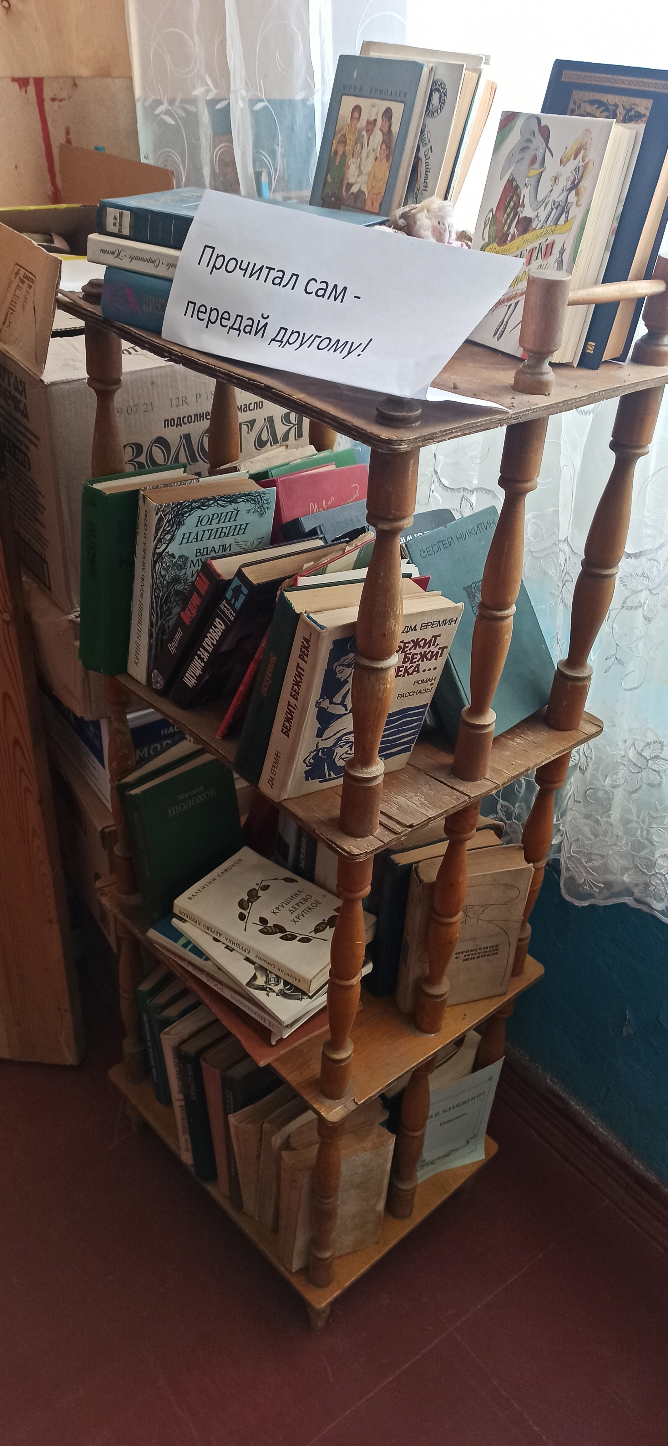 На нескольких полках – книги, подаренные библиотеке ее читателями. Такое модное теперь слово, как «буккроссинг» в Исадах не в ходу, этажерку с книгами у входа в библиотеку Мария Александровна ласково называет «выставочка». Но задача у этой этажерки точно такая же: в любое время, когда здание СДК открыто, независимо от того, на месте ли библиотекарь или отошла, каждый желающий может взять отсюда книгу себе домой или же принести книгу из дома и оставить тут для других читателей.