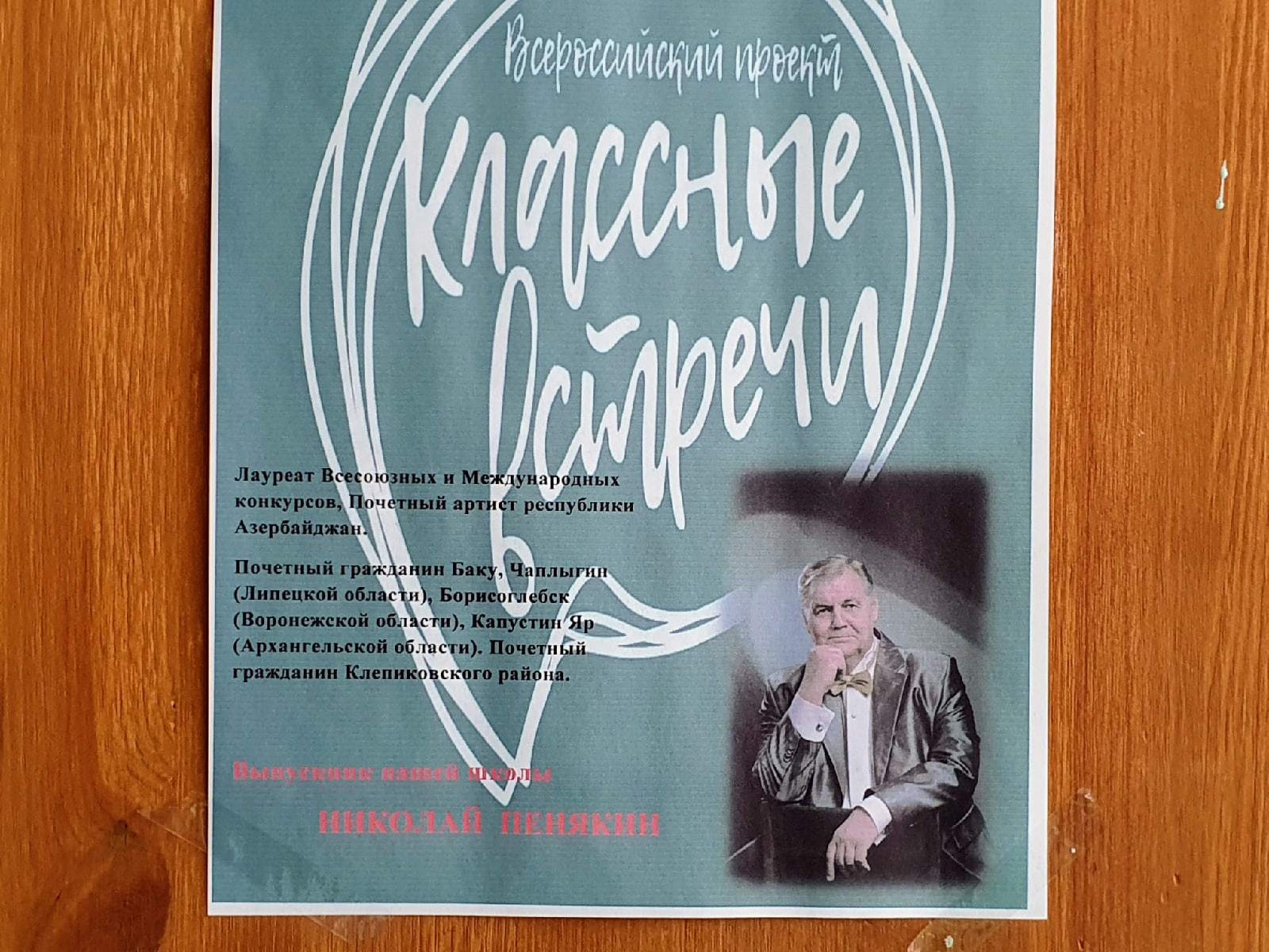 – Николай Пенякин – выпускник нашей школы, – говорит исполняющая обязанности директора школы Ольга Яшина. – Артист часто даёт концерты в районе, а вот в школу мы его пригласили в первый раз. Он исполнял песни, которые нравится всем. На концерте присутствовали одноклассники Николай Пенякина, учителя и учащиеся Школы. Пригласили мы и нашего ветерана, несовершеннолетнего узника фашистских концлагерей Алексея Семеновича Перова.