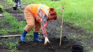 Сразу же после посадки саженцы полили, чтобы деревца прижились.