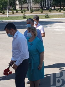Николай Любимов начал свою рабочую поездку в Кораблино с посещения мемориала. Он вместе с представителями местной администрации и общественностью возложил цветы к подножию монумента.