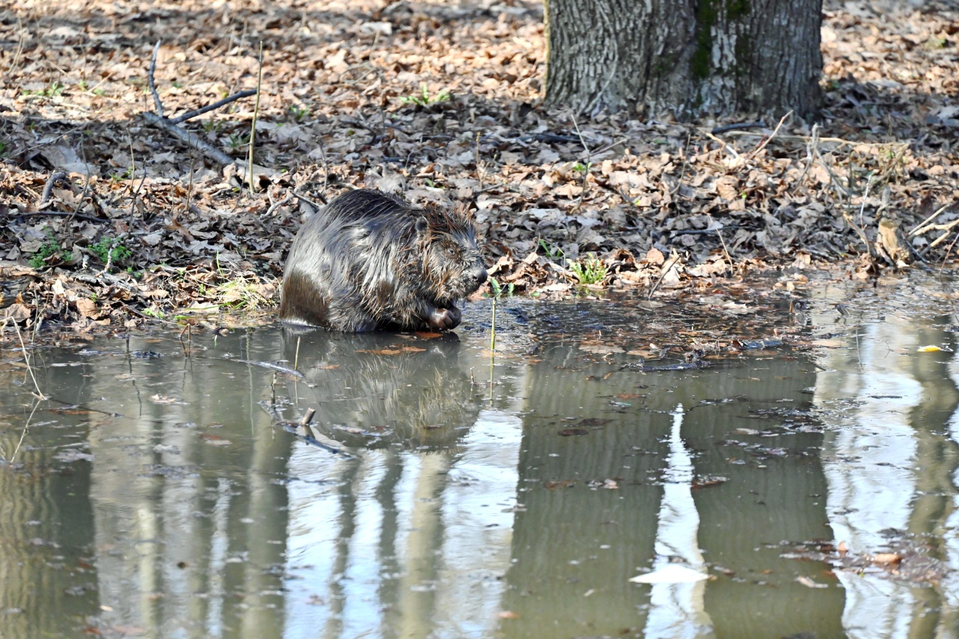 Зверек вынырнул из воды и уселся на берег неподалеку от центральной аллеи парка. К бобру потянулись люди с телефонами и принялись его фотографировать. Толпа быстро увеличивалась. Бобер такого внимания к себе не ожидал. Он явно не спешил уходить. После длительной фотосессии на берегу зверь приступил к подводному плаванию, высовывая мордочку на поверхность. И у зрителей появилась новая игра: угадай, где бобер.