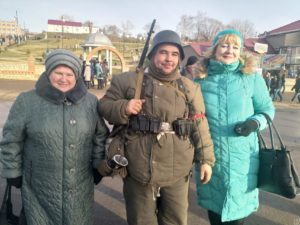 Четыре дня назад Николай Иванович Маштаков отпраздновал свое 95-летие. Рядом с ним за реконструкцией боя в Михайлове наблюдала Александра Ивановна Грязева. Она стояла и плакала.