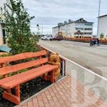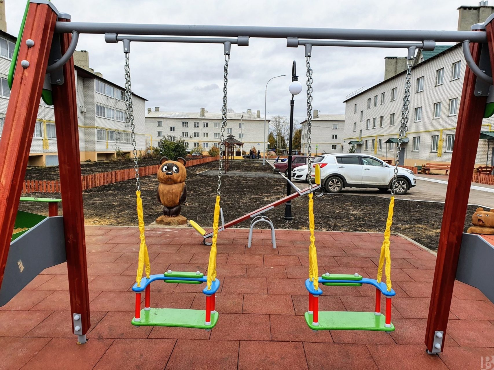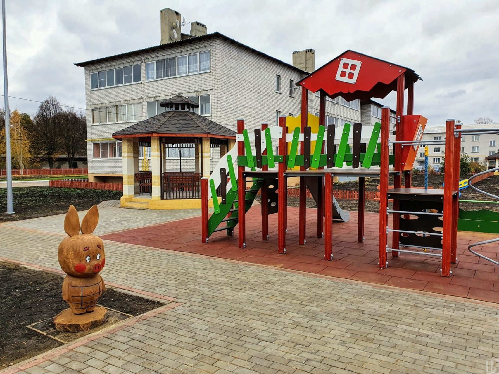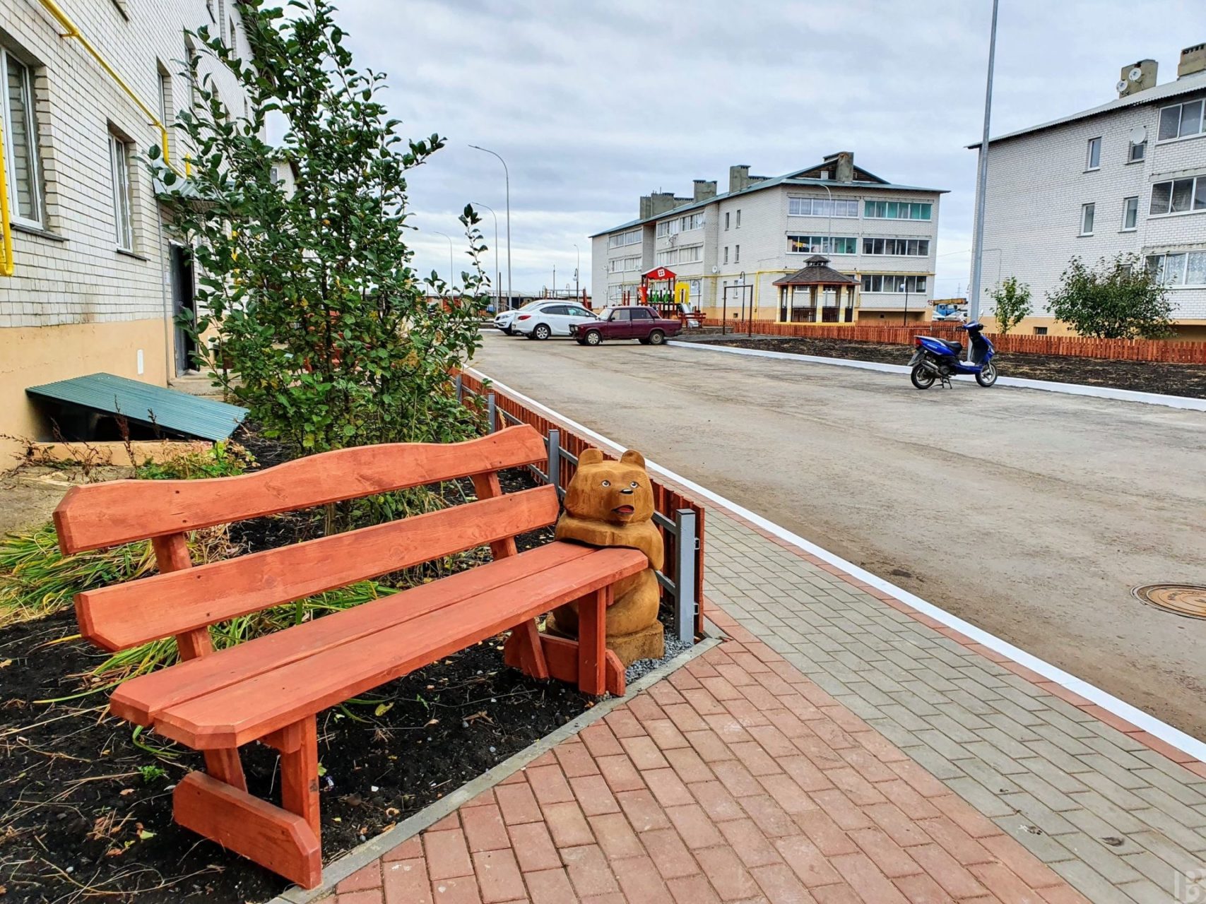 В ходе благоустройства дворовой территории асфальтированы проезды между домами с устройством пешеходных дорожек, возведены детская игровая и спортивная площадки, обустроены площадки для отдыха из брусчатки. На них установлены беседки для отдыха, скамейки и урны. Также выполнено устройство наружного освещения и малых архитектурных форм, оборудовано ограждение, высажена газонная трава.