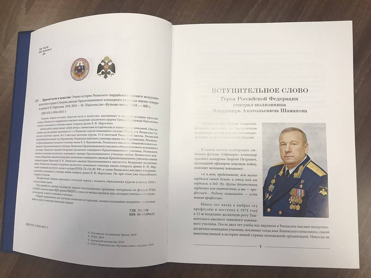 На презентации книги Владимир Шаманов отметил: «Рязанское десантное училище за заслуги в подготовке офицерских кадров для Воздушно-десантных войск получило почетное наименование «гвардейское. Это заслуга всех выпускников училища».