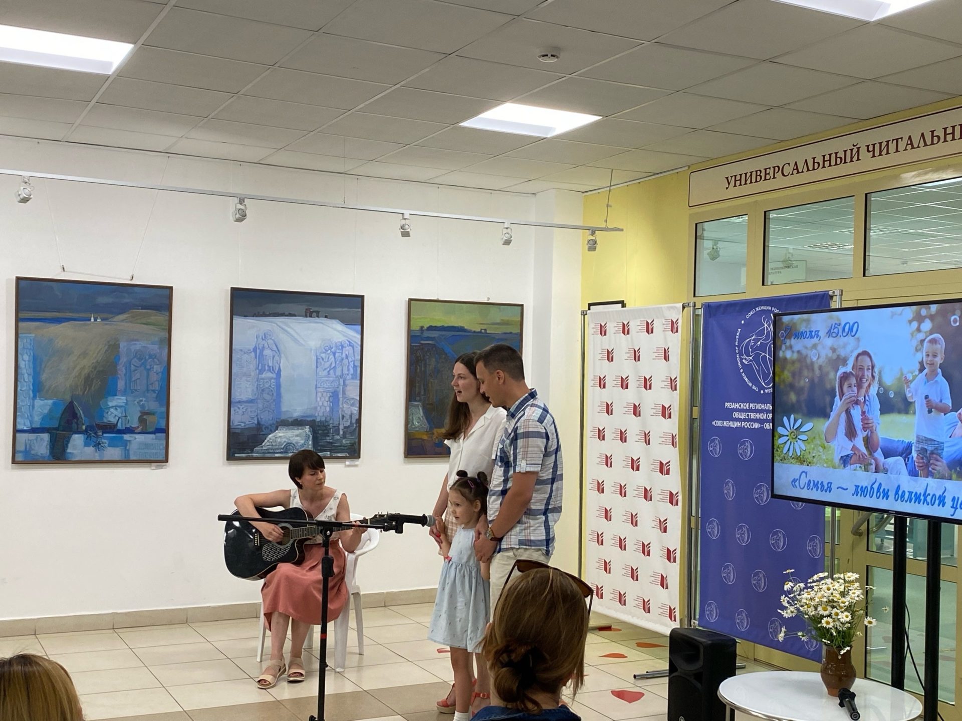 Директор библиотеки им. Горького, председатель Рязанского областного Совета женщин Наталья Гришина поздравила всех присутствующих с праздником и рассказала, что ее бракосочетание состоялось 50 лет назад 8 июля. В то время дата не была приурочена ко Дню семьи: «Этот день призван показать силу и значение семьи. А семья – основа нашего Государства, нашей России».