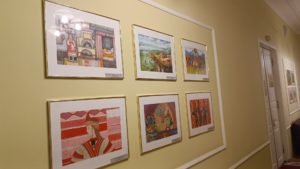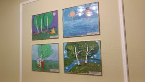 Отдельно Владимир Янаки обратил внимание гостей на работу ученицы Рыбновской детской школы искусств Елизаветы Андреевой, изобразившей бой, в котором участвовал её земляк Артём Прокопович. Бой проходил на одном из важных опорных пунктов ВСУ.