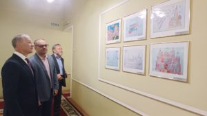 – Родители сирийских детей были казнены террористами. В августе 2021 года эти дети посетили Москву по приглашению Министерства обороны России. После поездки они в своих работах изобразили знаковые места России: Красную площадь, собор Василия Блаженного, храм Христа Спасителя, русскую матрёшку, русский национальный костюм и пейзажи России, – рассказал Владимир Янаки. – Своим искренним творчеством школьники выражают глубокую благодарность Президенту и Вооруженным Силам Российской Федерации за помощь сирийскому народу в борьбе с международным терроризмом и мир на своей земле.