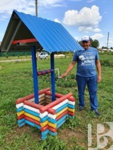 Площадку возле дома, который хотят купить москвичи Болдины, Василий Васильевич благоустроил лично. Сельчане, конечно, помогали. Пришли, кто с граблями, кто с пилой. Глава поселения вооружился сварочным аппаратом и украсил площадку малыми архитектурными формами из металла.