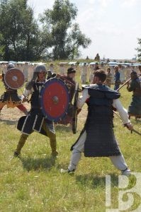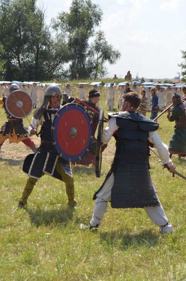 Дорога от парковки автомобилей до площадок, на которых развернулся фестиваль «Битва на Воже», не долгая, но жаркая и многолюдная. Скрываясь от нещадного солнца под зонтиками, размеренно движутся вверх пожилые пары. Их с легкостью, несмотря на +35 в тени, обгоняют веселые молодые компании. Без головных уборов, зато с запасами воды. С шумом, кидаясь под ноги прохожим, бегает малышня, одергиваемая родителями. Семейных здесь большинство. На мой простой вопрос «Вы тут впервые?» попутчики удивленно вскидывают брови. Кто-то приезжает в Глебово-Городище во второй раз, кто-то в четвертый. Межрегиональный военно-исторический фестиваль действительно популярен.