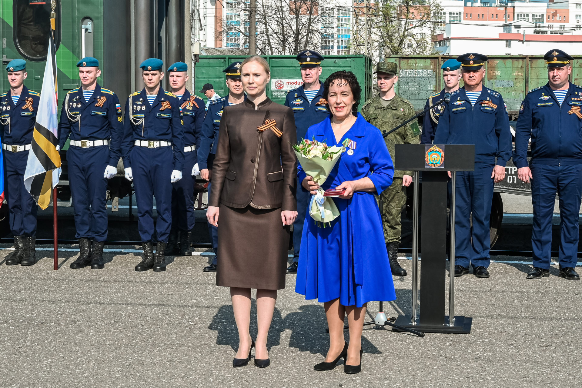 На железнодорожном вокзале «Рязань 2» поезд торжественно встречали ветераны Великой Отечественной войны, участники специальной военной операции, курсанты и офицеры РГВВДКУ имени генерала армии В.Ф.Маргелова, представители общественных организаций, юнармейцы, многочисленные рязанцы. На перроне к собравшимся обратилась первый заместитель председателя правительства Рязанской области Анна Рослякова.