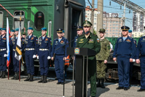 Акция «Единство в памяти. Сила в подвиге» стартовала 19 апреля в Москве. Железнодорожный состав сделает остановки в 75 населённых пунктах Российской Федерации. Агитационно-пропагандистская акция с использованием железнодорожного транспорта – важное событие в год юбилея Победы и объявленный Президентом России Год защитника Отечества.