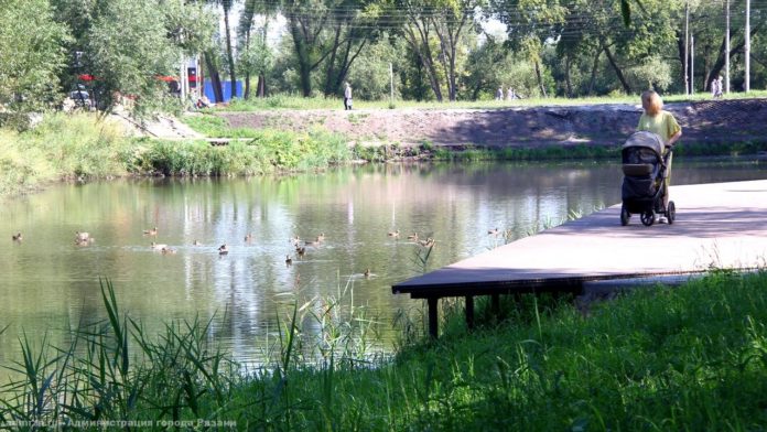 Проектом предусмотрено устройство пешеходных дорожек, велодорожек, покрытия для спортивных и детских площадок. Проводится расчистка территории, устройство деревянных настилов для отдыха, укрепление склонов прудов.
