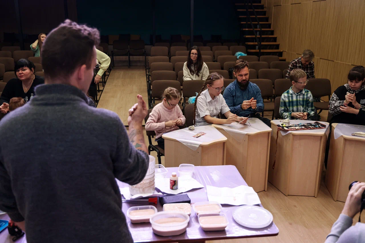 В рязанской школе-интернате №26 для детей с проблемами зрения прошло занятие по изготовлению новогодних игрушек. Это часть проекта «Лепка без границ». Его посетили первый зампред правительства региона Денис Боков и председатель комитета по делам молодежи Рязанской области Виталий Косачев. Занятия проводит художник и скульптор Александр Синицын. В проекте прошло уже четыре занятия. Десять учеников школы изучали, как делать формы из резины и силикона для новогодних игрушек, а затем заполняли их специальной безопасной эпоксидной смолой и красили. Пока форма застывала, дети вместе с родителями лепили фигурки из пластилина. Готовые игрушки планируют повесить на новогодних елках города, а также продавать на ярмарках «Рязань — новогодняя столица России».