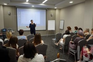 Мастер-класс для более чем 20 будущих участников фестиваля «Окские сезоны» провела член Союза дизайнеров РФ, доцент кафедры «Теория и практика дизайна» Сочинского института моды, бизнеса и права Юлия Иванова.