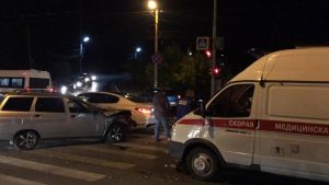 Вчера вечером произошло ДТП на светофоре возле гипермаркета «Лента». Столкнулись три легковых автомобиля. По предварительной информации, 32-летний водитель ВАЗ 2111 при повороте во двор не уступил дорогу, тем самым нарушил правила дорожного движения. Поворачивая налево, водитель ВАЗа столкнулся с двигавшимся навстречу автомобилем Дэу под управлением 54-летнего рязанца. От удара машину выбросило на пешеходную зону, а ВАЗ 2111 отбросило на стоящий сзади автомобиль Киа под управлением 32-летнего жителя областного центра.