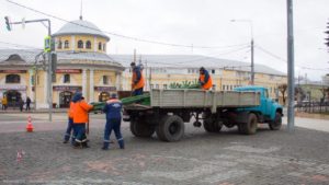 15 ноября сотрудники Дирекции благоустройства приступают к установке главной городской елки на площади Ленина. Сначала они соберут основание, затем ствол, вручную установят ветки, а затем ограждение.