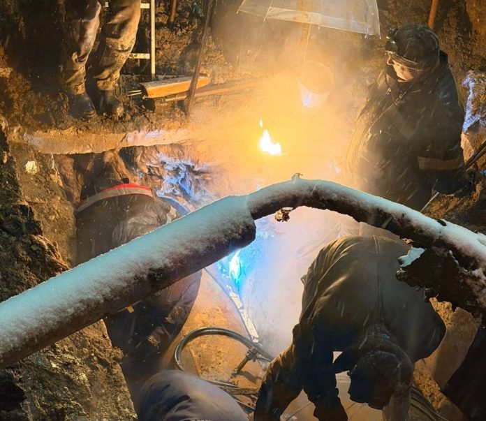 Ограничение подачи теплоносителя потребителям началось вчера в 11:25. После завершения ремонтных работ в 03:25 началось заполнение сетей. На данный момент режим восстановлен, отопление и горячая вода подаются жителям.