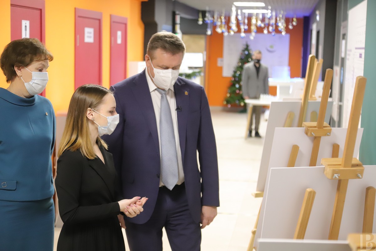 Глава региона Николай Любимов вместе с министром образования и молодежной политики Ольгой Щетинкиной и руководителем центра поддержки добровольчества Рязанской области Евгенией Решетиной посетил фотовыставку «Добровольчество через всю жизнь».