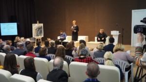 Как отметила директор областной библиотеки Наталья Гришина, встреча в этих стенах проходит не случайно. Федорова называли Московским Сократом. Работая в Румянцевской библиотеке в конце позапрошлого века, он объединил вокруг себя лучшие умы современности, пытавшиеся постигнуть предназначение человека на Земле и во Вселенной. При этом философия его очень активна – не отвлеченное мировоззрение, а деятельная помощь ближнему. Он раздавал свое жалование нуждающимся сотрудникам библиотеки, жертвовал вещи. Девиз “Жить по-Федоровски” стал основополагающим в деятельности многих рязанцев, которым заместитель председателя правительства области Лариса Крохалева вручила благодарственные письма за их просветительскую работу на благо культуры родного края. Среди таких подвижников Сергей Филимонов, организующий Гаретовские чтения в Ряжском районе, сасовский библиотекарь Лариса Бабанова, открывающая богатое наследие Федорова своим землякам, руководитель культурно-просветительского проекта “Океан Солярис – острова памяти” Ирина Нечаева, исследователь творчества Солженицына Владимир Крылов, активный член рязанского Федоровского общества Виктор Васильев, создатель музея Циолковского в рязанской школе №16 Виктор Шурчков, директор горьковской библиотеки Наталья Гришина и другие замечательные люди области. Отдельные слова благодарности получили меценаты и благотворители, без чьей финансовой и материальной поддержки многие проекты не воплотились бы в реальности.