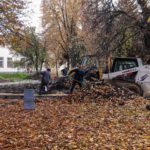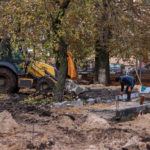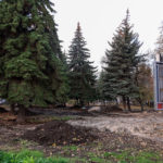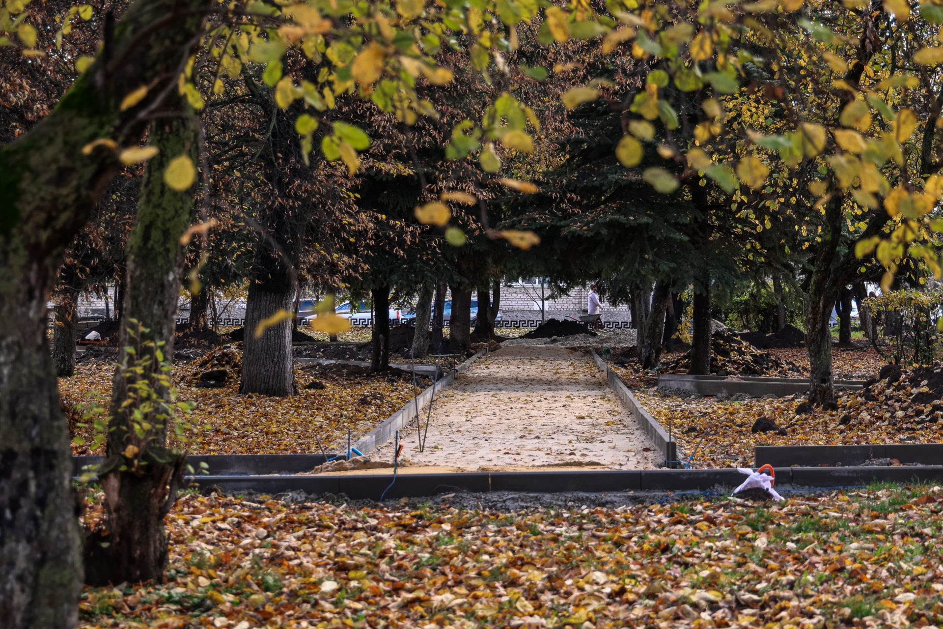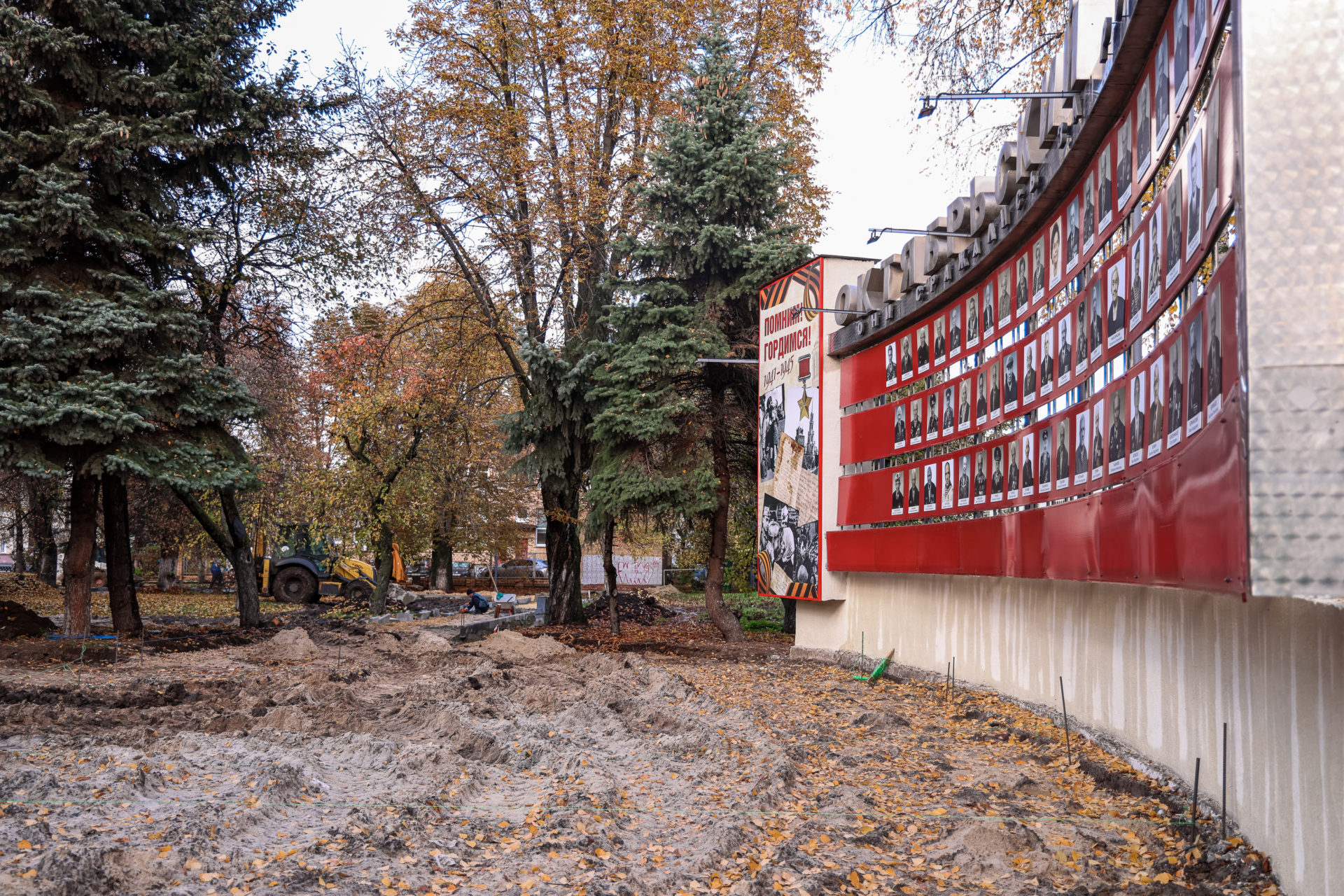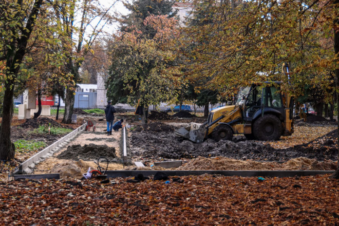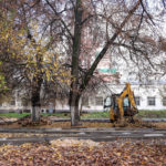 Недавно в сквере началось благоустройство. Работают люди и техника. Разобрано старое асфальтобетонное покрытие, демонтирована плитка. Идут земельные работы, уже вырисовываются четкие контуры будущих пешеходных дорожек и зеленых зон. Также здесь должны установить новые скамейки и урны, сделать наружное освещение.