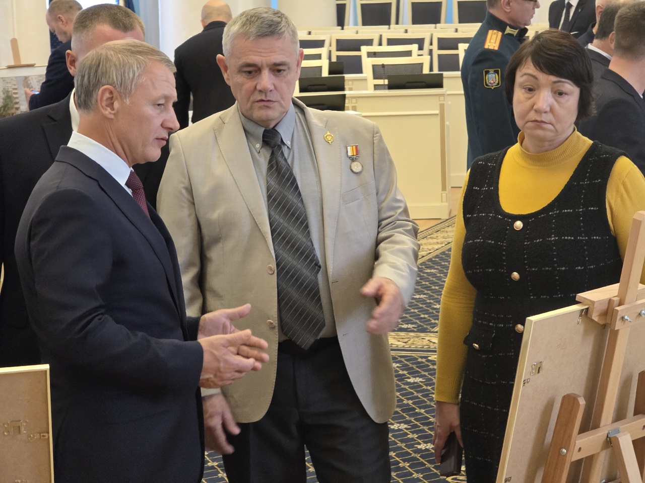 Торжественное открытие экспозиции состоялось в Гербовом зале Рязанской областной Думы. В церемонии открытия приняли участие представители депутатского корпуса и участники региональной кадровой программы «Герои62». Выставку открыл председатель Рязанской областной Думы Аркадий Фомин.