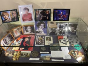 От корифеев экрана и сцены ушедшей эпохи несколько шагов до современных блистательных актеров. Нашли свои портреты и биографии на стенах почетные гости Мария Звонарева, много лет прослужившая в рязанских театрах, актриса Евгения Бордзиловская, одна из первых ведущих рязанского телевидения. Вместе с ними на персональных экспонатах поставил свой автограф артист Олег Пичурин. Переходя от витрины к витрине, зрители вспомнят и журналиста, актера, режиссера Валерия Майорова.