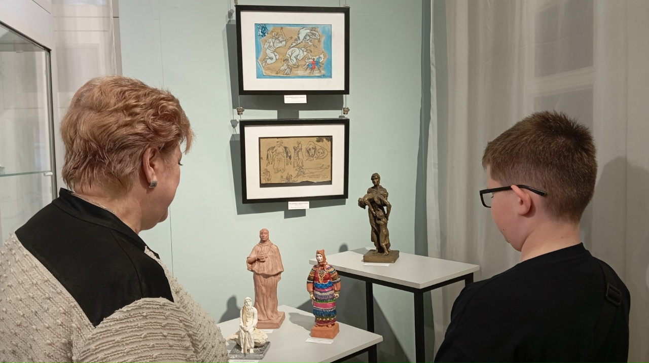 На открытии выставки Татьяна Черникова поведала историю своей «маленькой, но очень стойкой семьи», поведав о чуде спасения бабушки Ольги и мамы Раисы из фашистского концлагеря в Литве. Эти события нашли отражения в работах художника: диптихе «Моя прабабка умерла в блокаду» (2025 г.) и скульптуре «Мои родители. Фашистский концлагерь» (1995 г.).