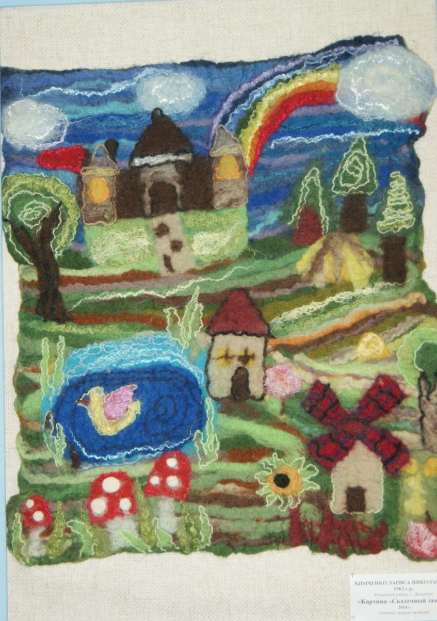 Среди выставленных изделий картины, сюжеты которых философски описывают окружающий мир выраженный творческим вдохновением мастера. Творческая мастерская находится в Дядьковском сельском доме культуры, здесь же проходят занятия с детьми в кружке фантазеры. Кружковцы с удовольствием перенимают опыт, а творческой фантазии ребят можно позавидовать, утверждает рукодельница.