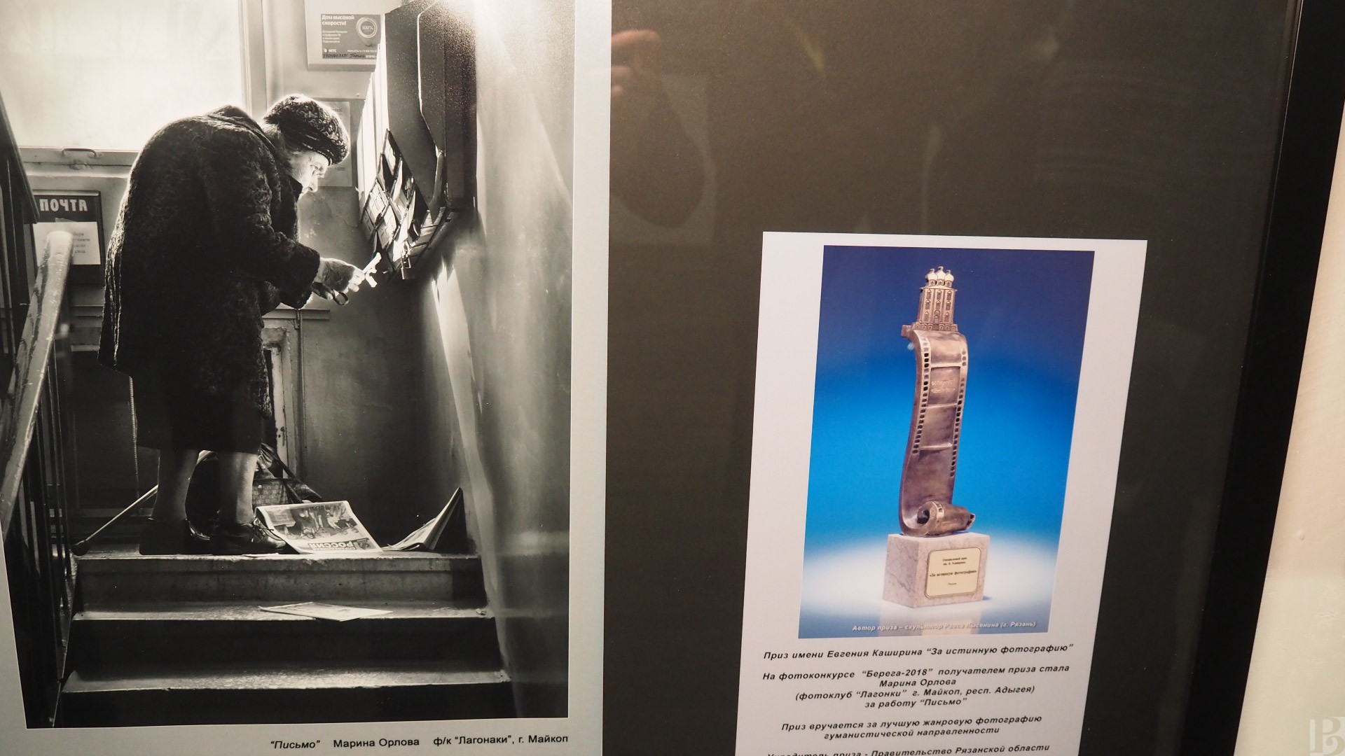 Обладателем приза имени Евгения Каширина «За истинную фотографию», учрежденного правительством Рязанской области, стала Марина Орлова из республики Адыгея за работу “Письмо”.