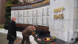 Церемония открытия Мемориальной доски и возложение цветов к Вечному огню прошла с соблюдением санитарных мер безопасности.