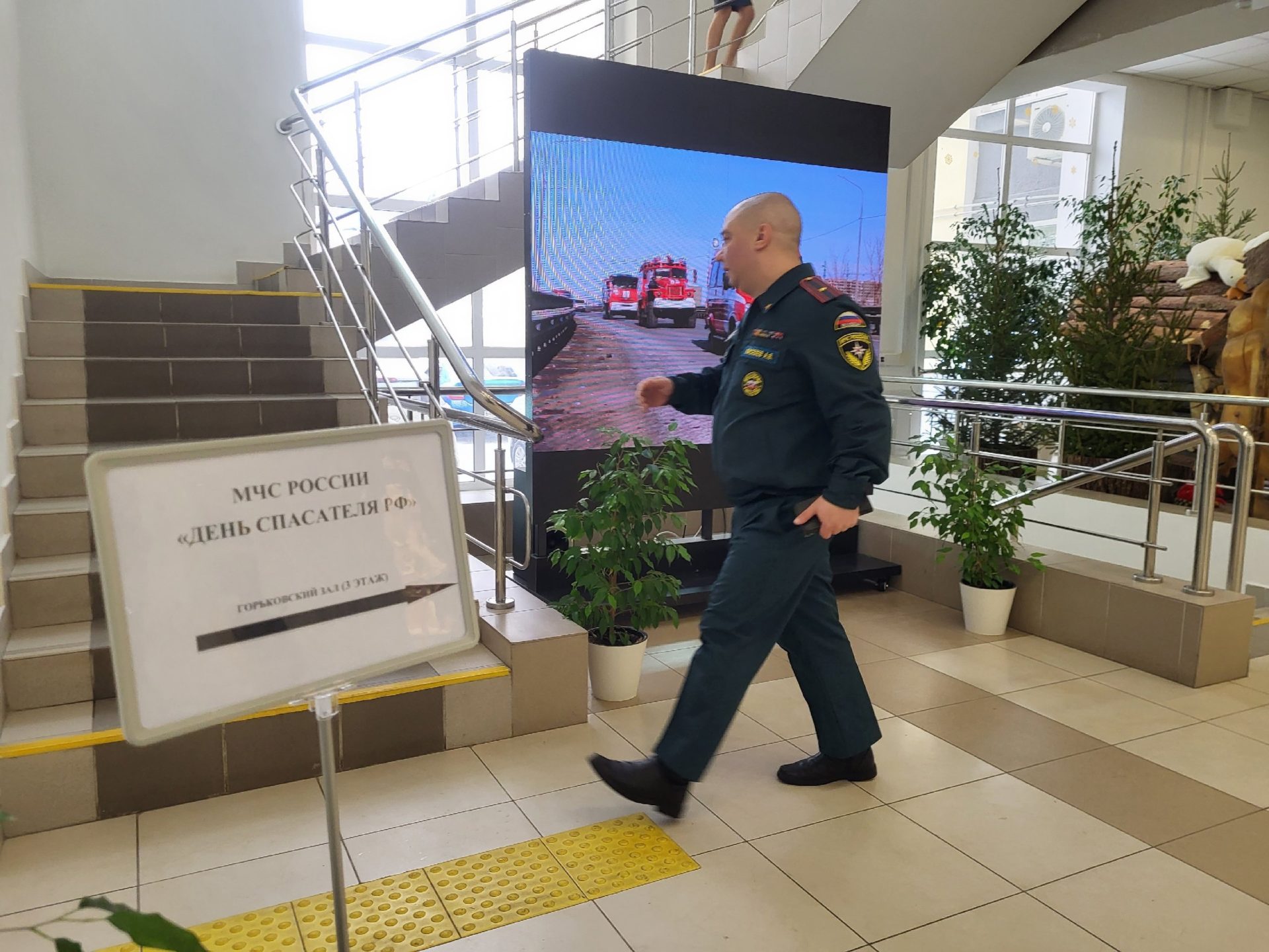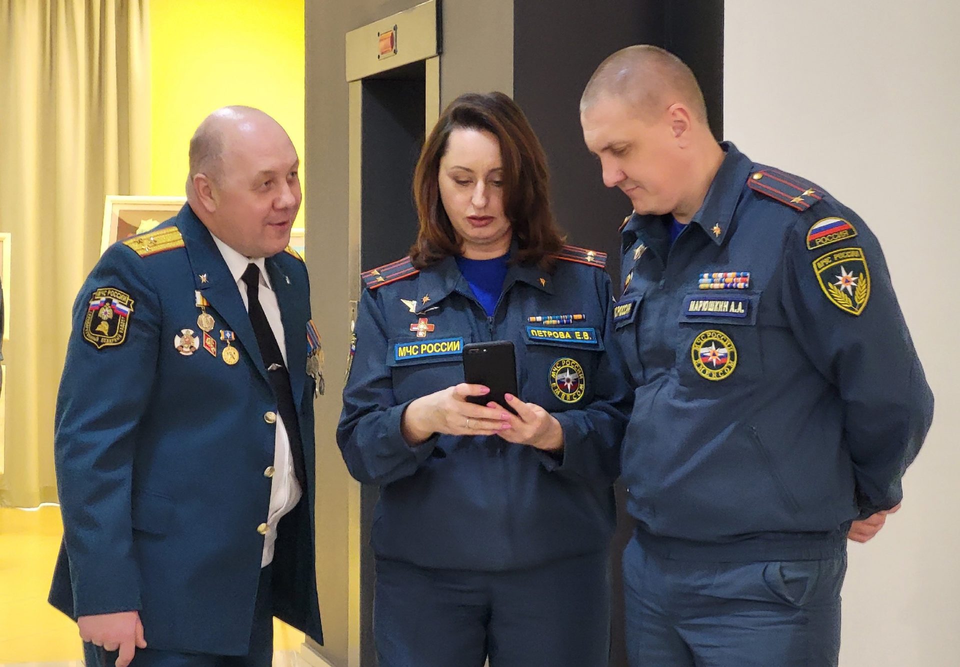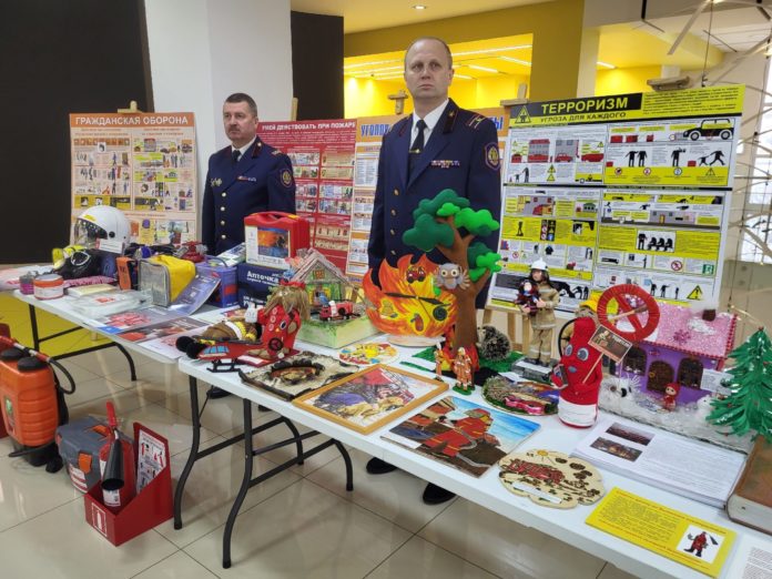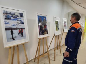 В фойе развернули выставку, на которой демонстрировалось оборудование, применяемое при спасении людей в различных чрезвычайных ситуациях. Были выставлены детские рисунки на тему пожарной безопасности и правил поведения людей на льду.
