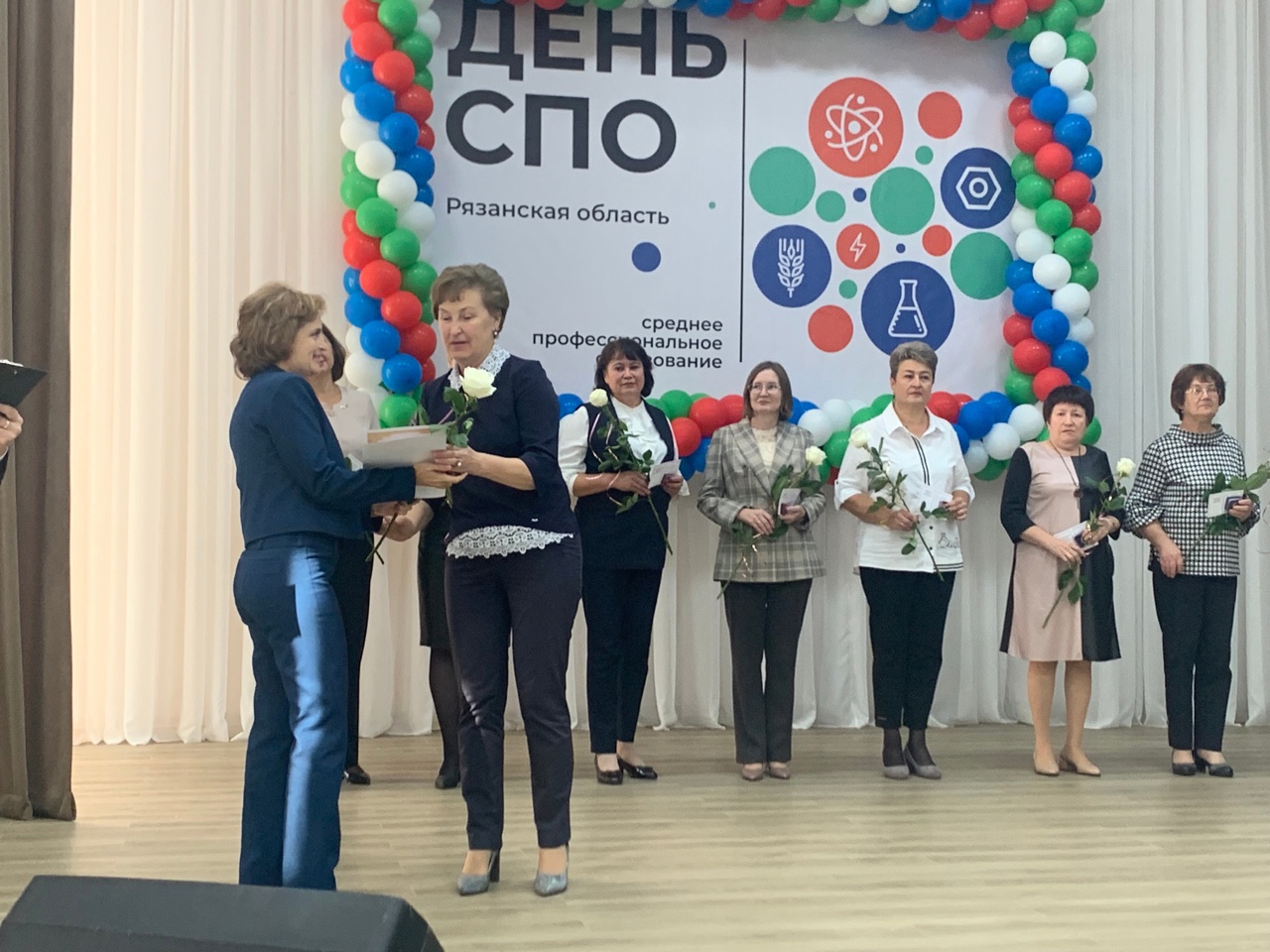 Ольга Щетинкина поздравила педагогов и ветеранов с праздником. Поблагодарила их за труд и сохранение системы среднего профессионального образования и вручила им федеральные и региональные награды.