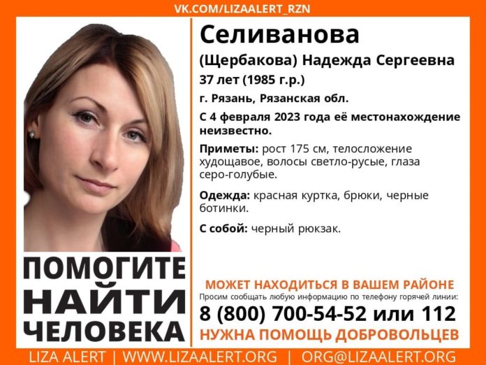 Местонахождение 37-летней Надежды Сергеевны Селивановой (Щербаковой) неизвестно с 4 февраля.