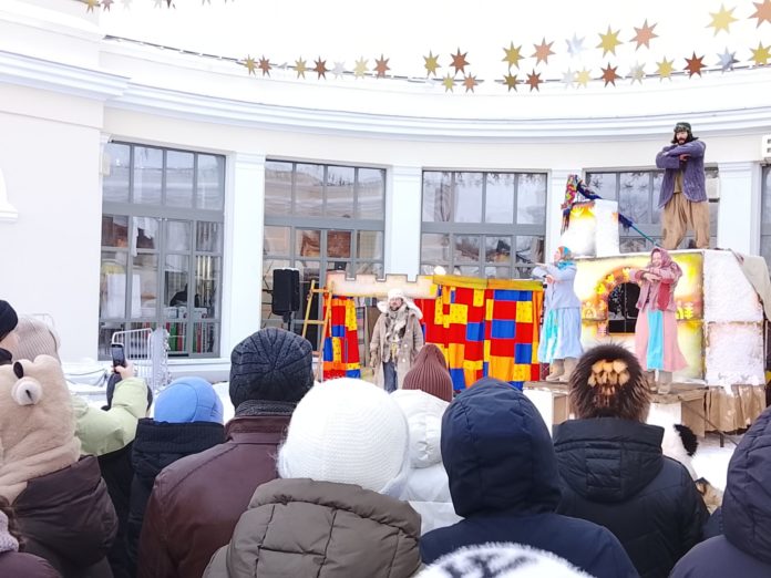 На Рязанской ВДНХ выступил уличный театр из Санкт-Петербурга, «Странствующие Куклы Господина Пэжо». Артисты показали показал спектакль «Чуды Диковинные» как часть фестиваля-маскарада «Привет! С Новым годом!».