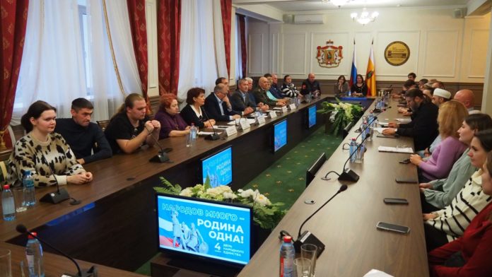 Выступления представителей национальных объединений были посвящены теме межконфессионального согласия. С федеральными и региональными межнациональными и этнокультурными акциями, проектами, укрепляющими гражданское единство, познакомил консультант министерства территориальной политики Игорь Митрофанов. Директор Дома общественных организаций Сергей Филимонов пригласил рязанцев на этнографический диктант 1 ноября. Провел круглый стол начальник отдела по работе с политическими партиями, национальными, религиозными объединениями и казачеством Владимир Сурков.